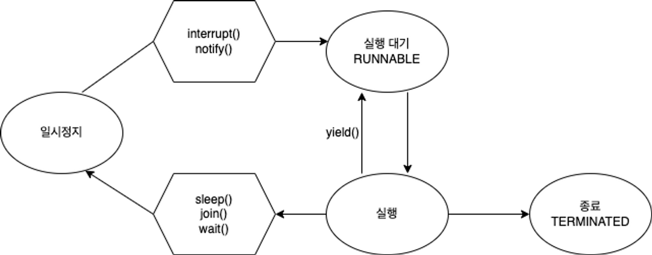 - 일시정지 상태에서는 쓰레드가 실행을 할 수 없는 상태가 된다.