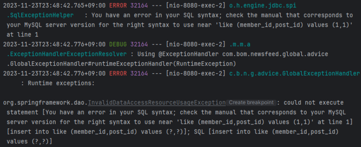 2. 어제 Like를 완료하고 테스트하는데 자꾸 Like 테이블을 생성하지 못하는 에러를 발견했다. 에러를 처음에는 이해를 못 하다가 30분 정도 자꾸 읽어서 보니까 문뜩 Like가 혹시 Query의 like로 들어가는 정신 나간 경우는 아닐까라고 생각했지만 결국 나는 그 정도로 개발자 분이 해결을 안 했을 리가 없다고 생각했다. 하지만 정신 나간 경우의 수가 발생하는 이변이 펼쳐졌다. 보자마자 이건 해결해 줘야 되는 문제 아닌가 싶었다. 아쉬운 데로 시간은 좀 날렸지만 급한 데로 Like Entity와 클래스명과 클래스 테이블명을 likes로 변경하여 테스트하니 잘만 돌아갔다. 흠... 참 어처구니가 없는 에러였다.