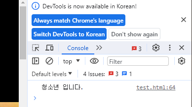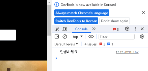 F12을 누르고 console로 변경하면 확인할 수 있다.