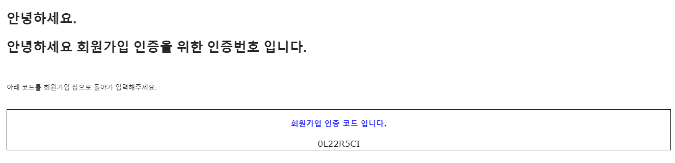 <h3 style="color:blue"> 회원가입 인증 코드 입니다. </h3>
