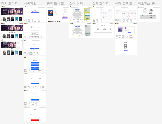 2. 아이디어 회의를 바탕으로 결정된 경매식 티켓 예매 주제에 관해서 ERD와 Wireframe을 작성했고 정보는 아래와 같다.