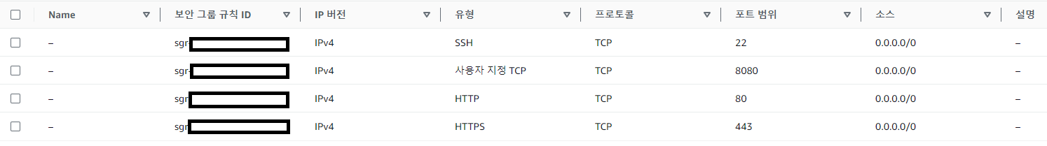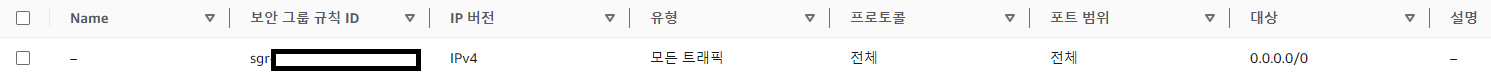 보안그룹 생성 설정은 다음과 같다.