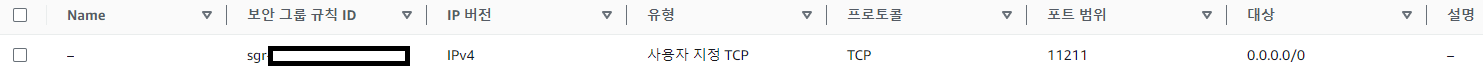 아웃바운드: 11211 모든 IP (0.0.0.0/0)로 나가는 트래픽을 허용