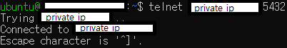 telnet {privateIP} {port}
